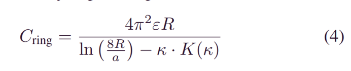 式中,R是环的半径,d-是环心之间的螺距,a-是线的半径,K (κ)是模量κ2=R2/R2+/R2(0.5d)2的完全椭圆积分。